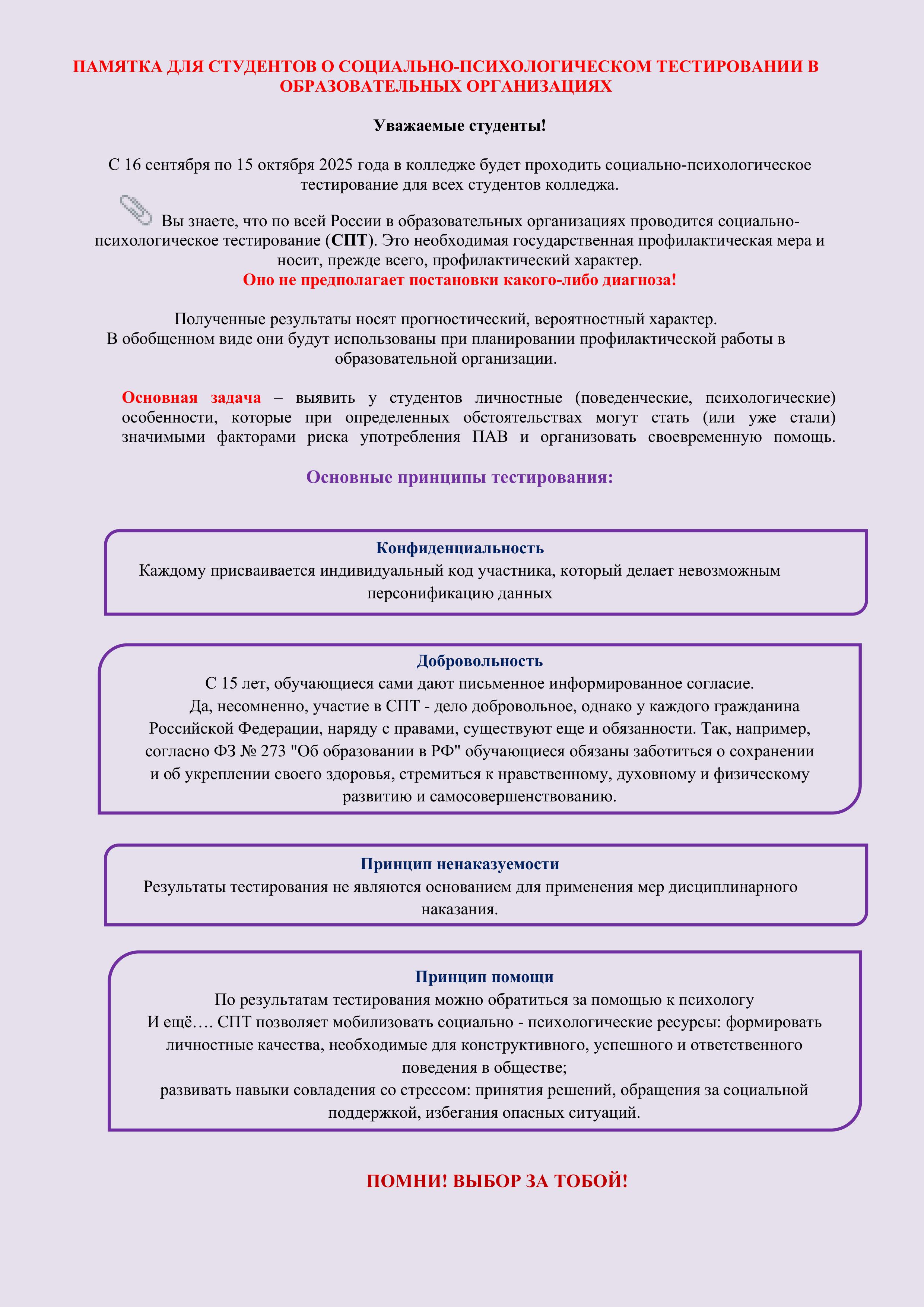 » Памятка для студентов о социально-психологическом тестировании
